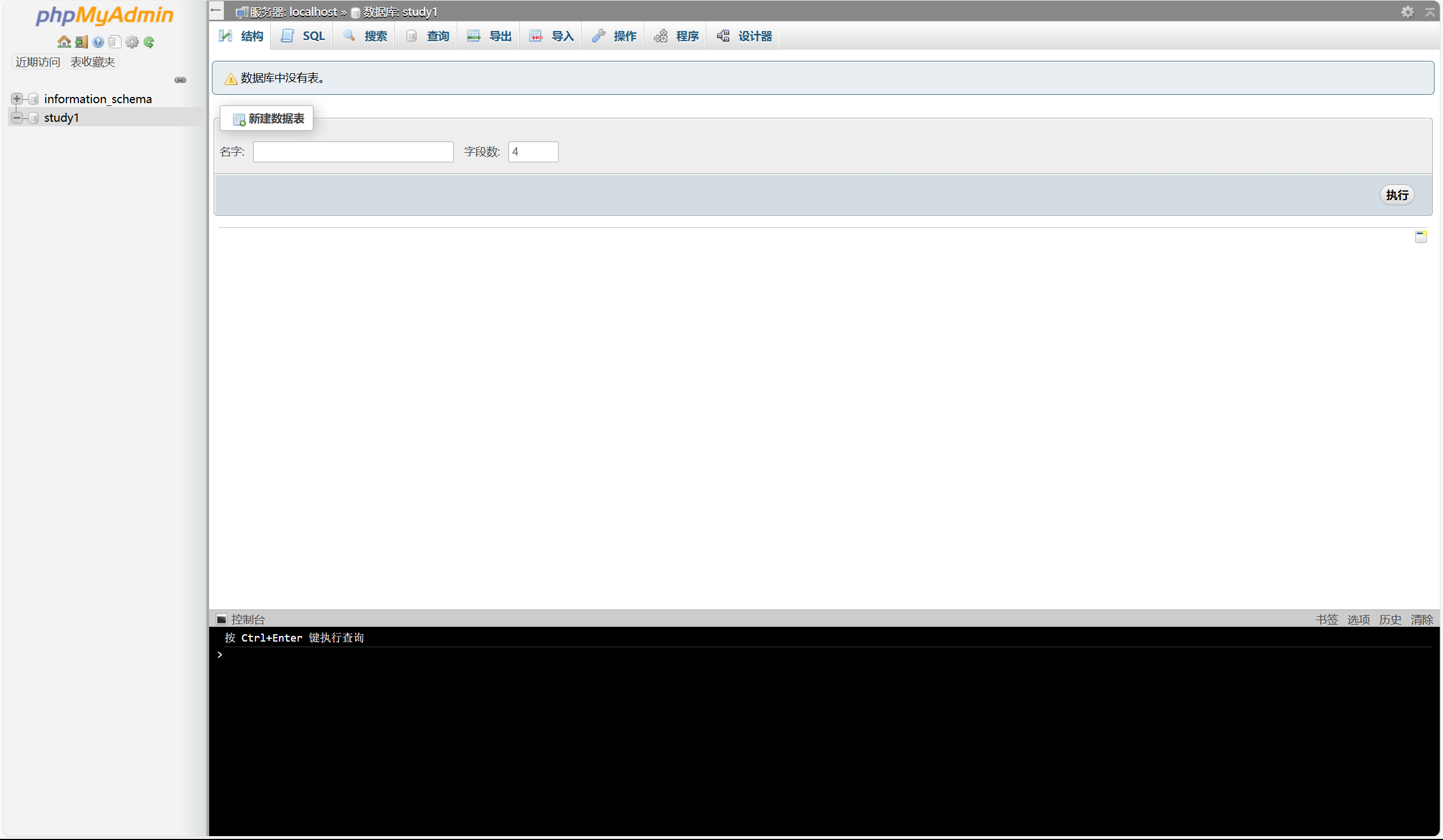 在左边的栏点击你刚刚在phpstudy创建的新数据库